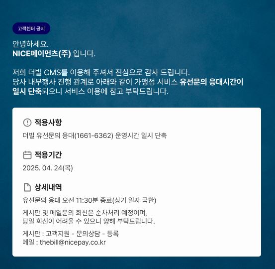 [더빌] 25.4.24(목) 유선문의 응대 일시 단축