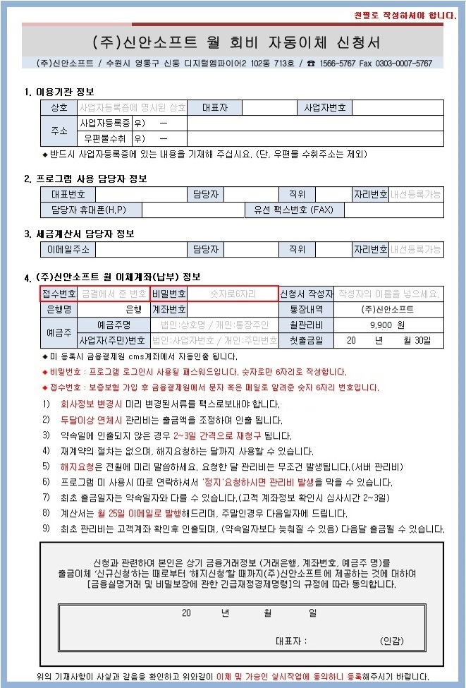 <공지>신안소프트 자동이체신청서