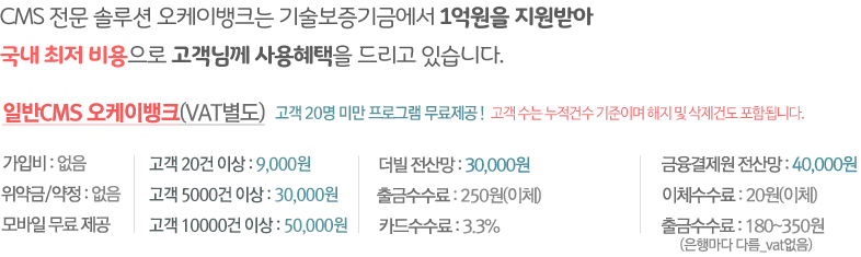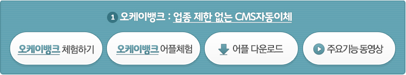 오케이뱅크 : 매월 일정금액을 출금하는 모든 업종에 적합하도록 설계된 CMS자동이체 솔루션